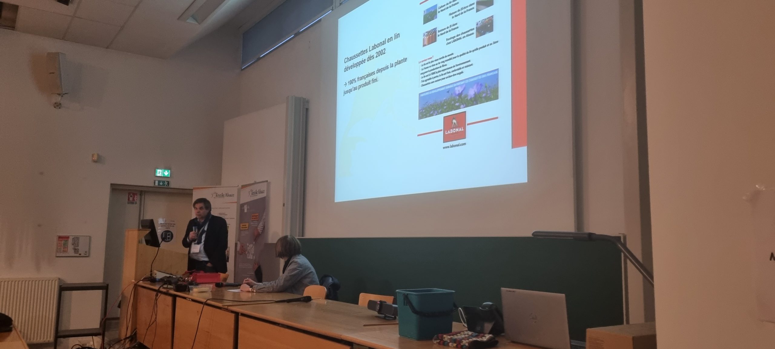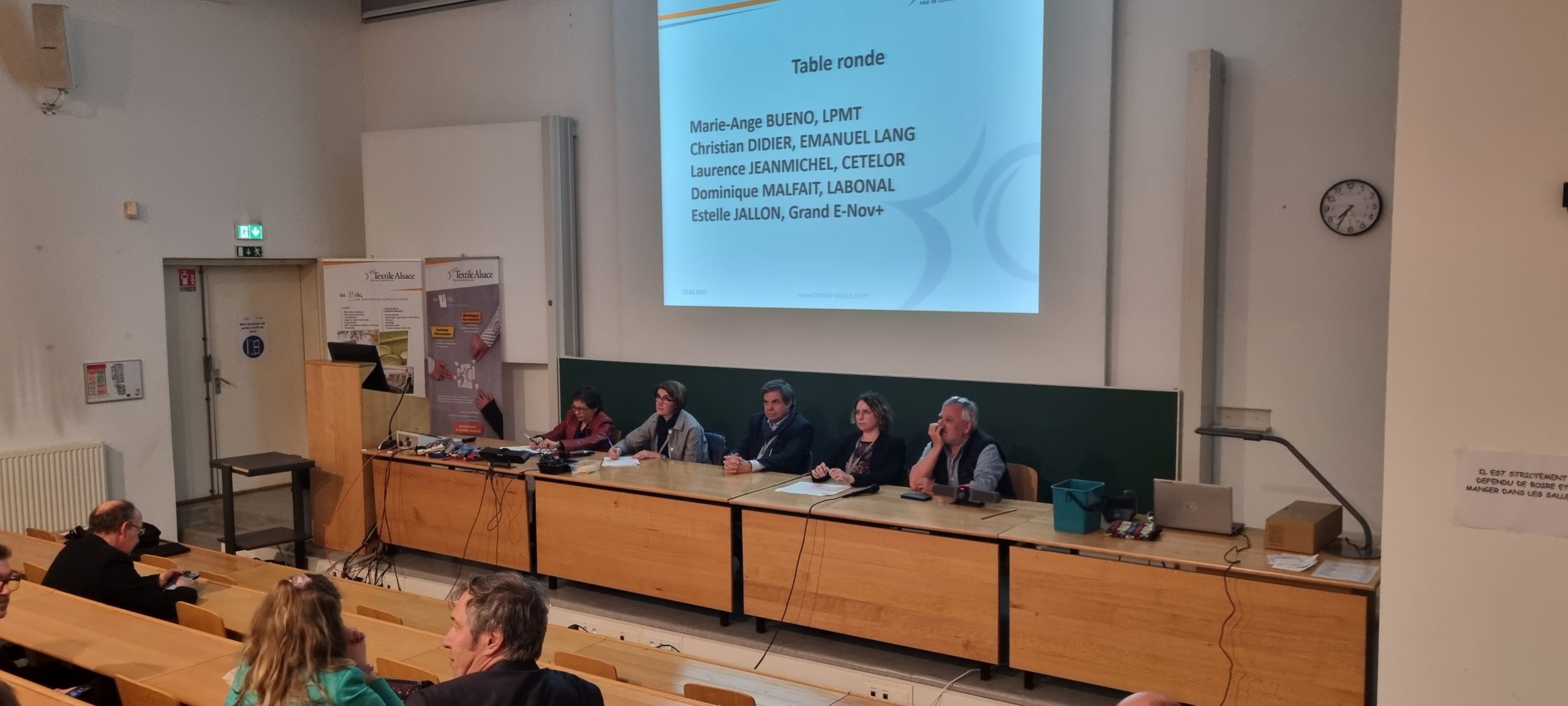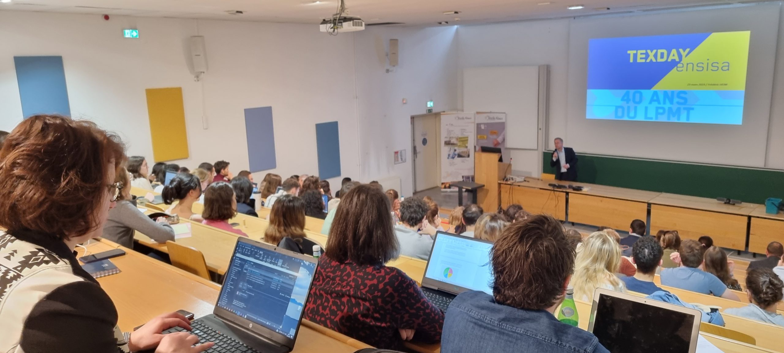 La journée se poursuivit par des conférences scientifiques et jusqu’au vendredi 24 mars en fin de matinée. Dans le cadre de cette édition spéciale « 40 ans du LPMT », des docteurs et chercheurs travaillant étroitement avec les équipes de recherche du LPMT, ont présenté des projets et travaux de recherche réalisés avec les matériaux textiles dans des domaines aussi variés que la santé, les dispositifs médicaux, les composites biosourcés, le sport, l’aéronautique et le spatial.