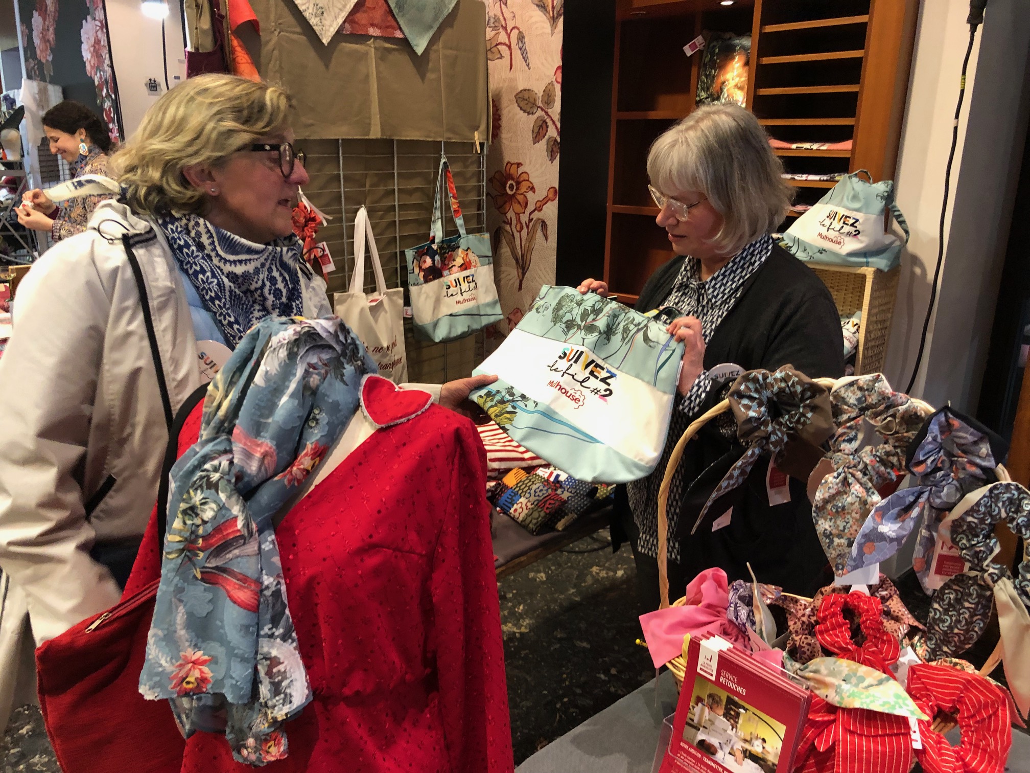 Ghislaine Bonaly – La petite Manchester, membre du Pôle Textile Alsace, a proposé un totebag upcyclé à l’effigie de cette deuxième édition de « Suivez le fil »